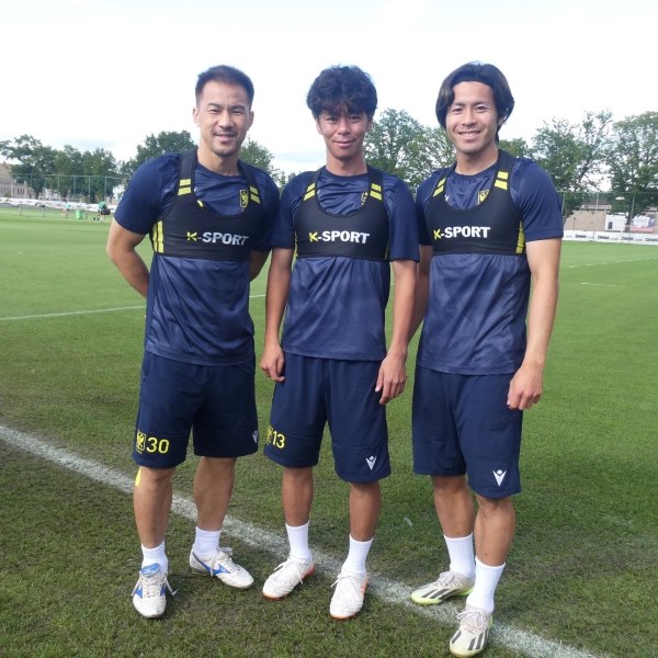 シント=トロイデンの(左から)岡崎慎司、伊藤涼太郎、小川諒也(写真)元川悦子