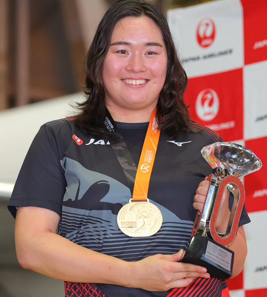 世界陸上で金メダルを獲得し帰国会見する北口榛花(C)日刊ゲンダイ