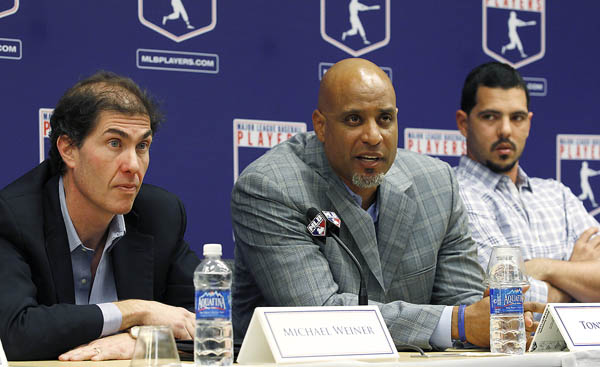 MLB選手会のクラーク専務理事(中央)は強気の姿勢を崩さないが(C)ロイター