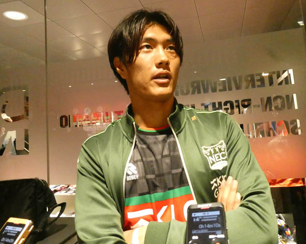 試合後のミックスゾーンで質問に丁寧に答える小川(写真)元川悦子