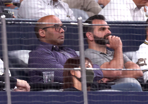 ネット裏にはジャイアンツのザイディ編成本部長(左)の姿も(C)日刊ゲンダイ