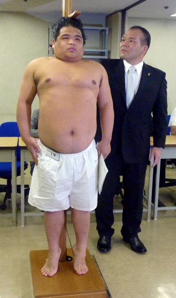かっては新弟子検査の身長測定では背伸びをする受検者も…(C)共同通信社