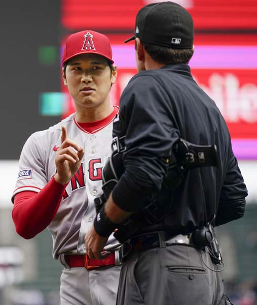 大谷も導入早々に、ピッチロック違反を取られた(C)AP=共同