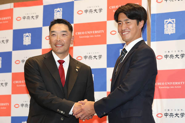 阿部監督と握手を交わす西舘(C)日刊ゲンダイ