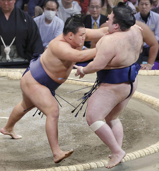 突き押しが武器の豪ノ山を紛砕(C)共同通信社