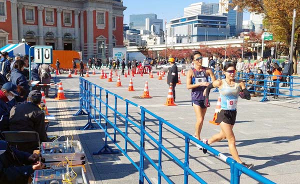 大阪は御堂筋で行われた国内初の男女混合リレー競歩(提供写真)