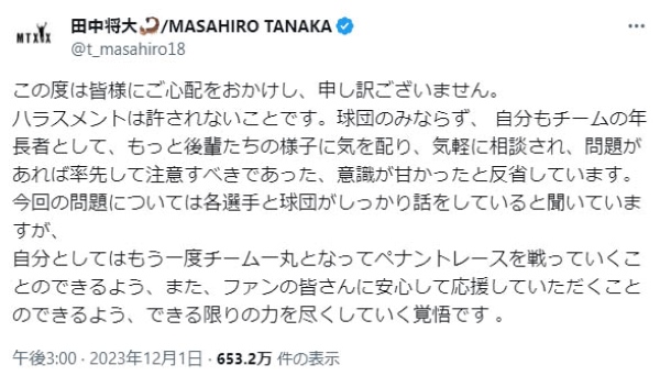 楽天・田中将大が安楽パワハラ騒動に「反省」も…後輩の愚行をスルーし株ダダ下がり