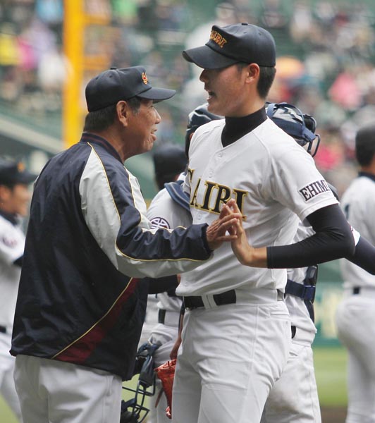 2013年春のセンバツで準優勝を果たした済美の上甲正典監督(左)と安楽(C)日刊ゲンダイ