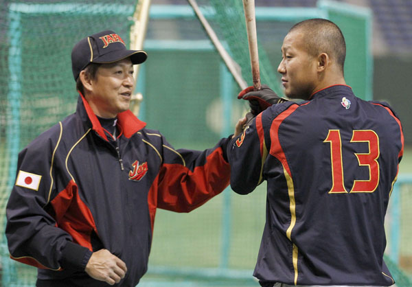 2013年WBCの日本代表で立浪コーチから指導を受ける中田(C)日刊ゲンダイ