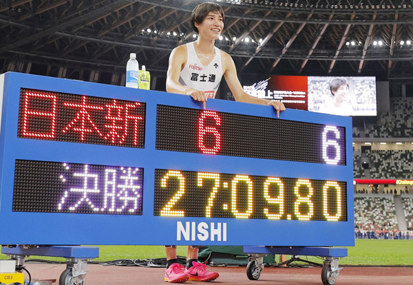 日本新記録の塩尻も参加標準記録に届かず(C)共同通信社