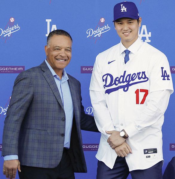 ロバーツ監督(左)は大谷に左翼守備を打診したらしいが(C)共同通信社