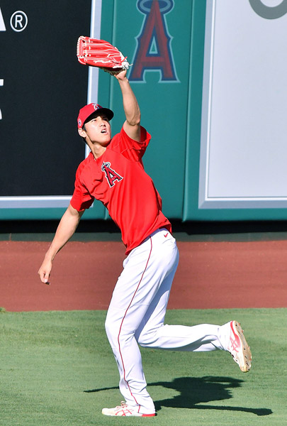 二刀流はただでさえ負担が大きいのに…(外野で守備練習する大谷=2020年)/(C)共同通信社