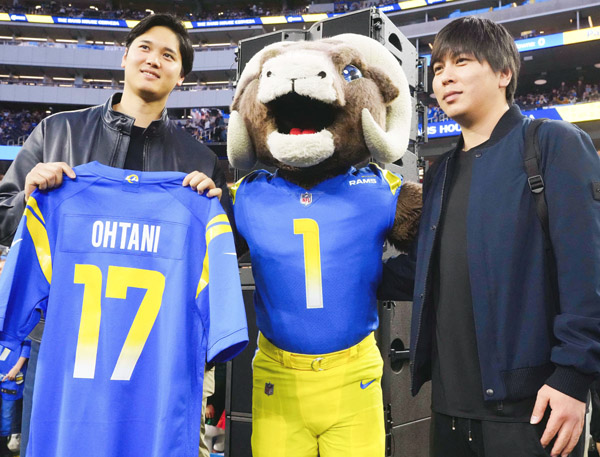 日本時間22日、NFLロサンゼルス・ラムズの本拠地ソーファイ・スタジアムを訪問した大谷翔平(C)ロイター/USA TODAY Sports