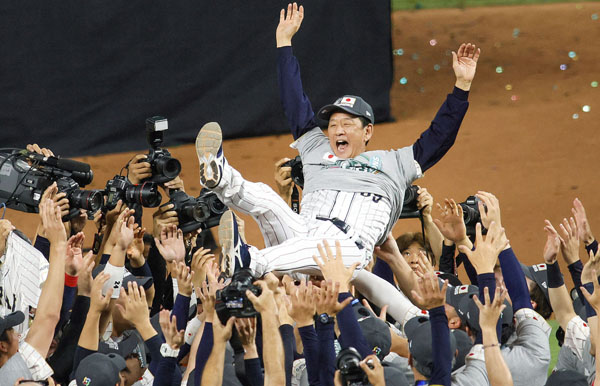 2023年WBCは日本が優勝! 胴上げされる栗山侍ジャパン監督=9月(C)ロイター/USA TODAY Sports