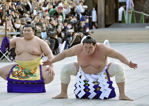 1月場所で復活を懸ける照ノ富士(奉納土俵入りを披露。太刀持ちは熱海富士)/(C)共同通信社