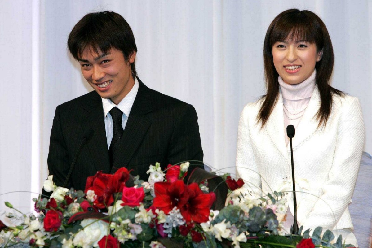 和田毅、仲根かすみの結婚会見(C)日刊ゲンダイ