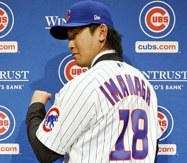 今永昇太がカブス入団会見で背番号「18」のユニホーム披露 英雄ゾブリストが着けた番号