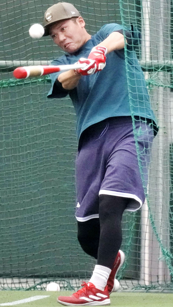 合同自主トレで打撃練習を行う坂本(C)共同通信社