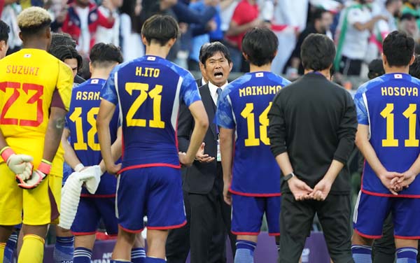 イラン戦敗退後に選手に話し掛ける森保監督(C)Norio ROKUKAWA / office La Strada