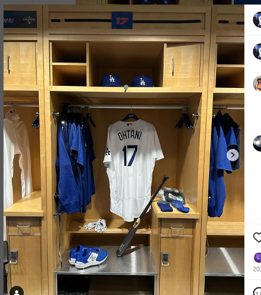 キチンと整頓された大谷のロッカー(C)本人のインスタグラムから