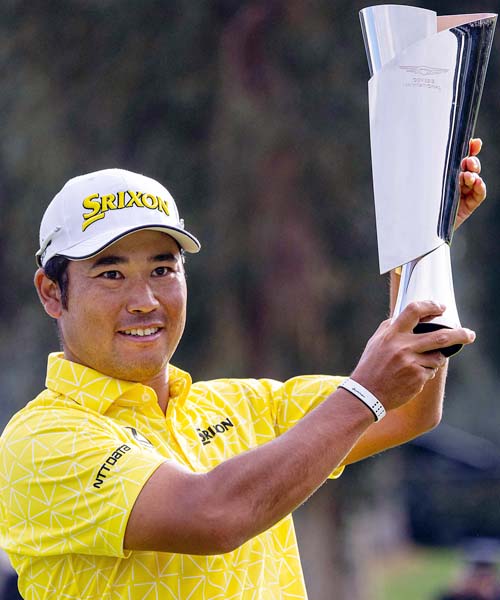 優勝トロフィーを揚げる松山(C)ロイター/USA TODAY Sports