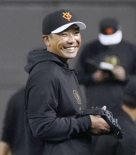 台北ドームで笑顔を見せる阿部監督(C)共同通信社