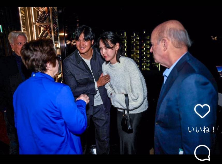 ガッツリ目線を合わせて挨拶する大谷夫人(C)球団公式カメラマンを務めるジョン・スーフー氏のインスタグラム(@jon.soohoo)より