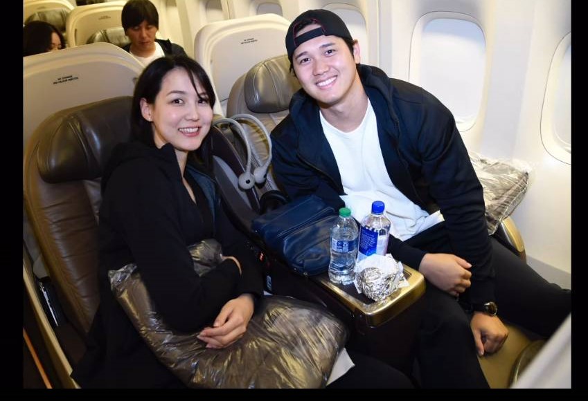 大谷夫妻の機内ショット(C)球団公式カメラマンを務めるジョン・スーフー氏のインスタグラム(@jon.soohoo)より