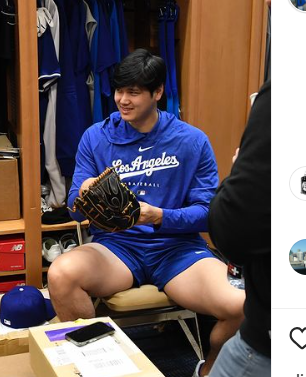 短パンがより顕著に際立たせる圧巻の太もも(C)ドジャースの公式カメラマンを務めるジョン・スーフー氏のインスタグラム(@jon.soohoo)より