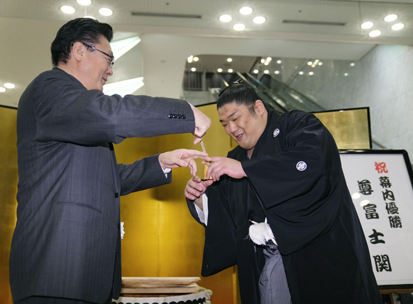 110年ぶりの偉業達成(尊富士)/(C)共同通信社