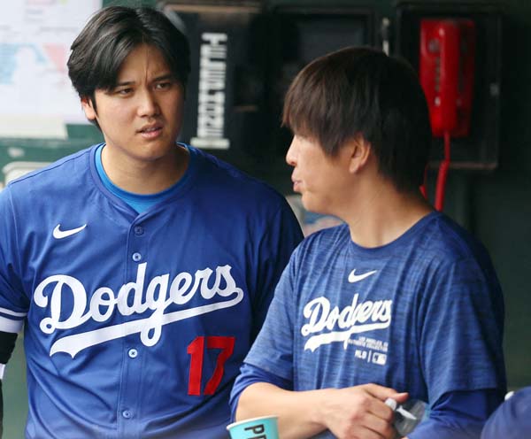 水原元通訳(右)は大谷と二人三脚でやってきたが…(C)ロイター/USA TODAY Sports