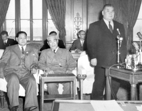 国会でも大相撲が取り上げられた(右から武蔵川理事、元佐渡ケ嶽親方、元関脇天竜)/(C)共同通信社