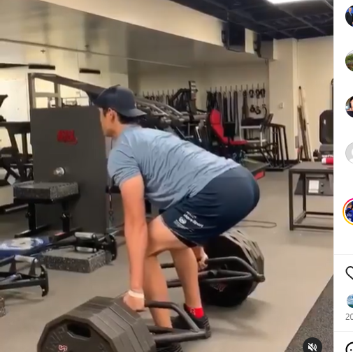 太ももが増強、短パンははち切れんばかりにパンパン!(C)ドジャース公式カメラマンを務めるジョン・スーフー氏のインスタグラムより