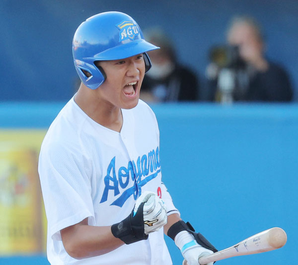 青山学院大・西川史礁 背中を叩くほどのフルスイングを支える強さと柔軟性