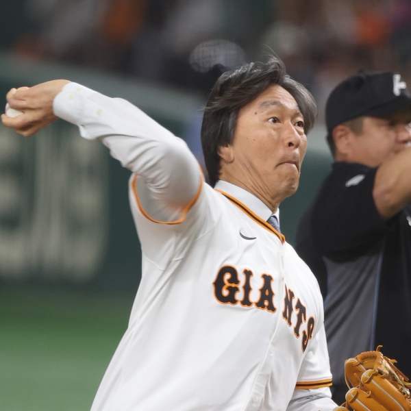 阪神戦の前に始球式を行った松井秀喜氏(C)日刊ゲンダイ