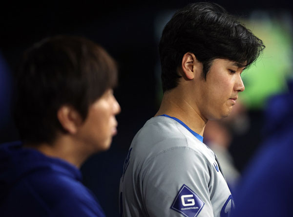 大谷、左は水原一平容疑者(C)ロイター/USA TODAY Sports