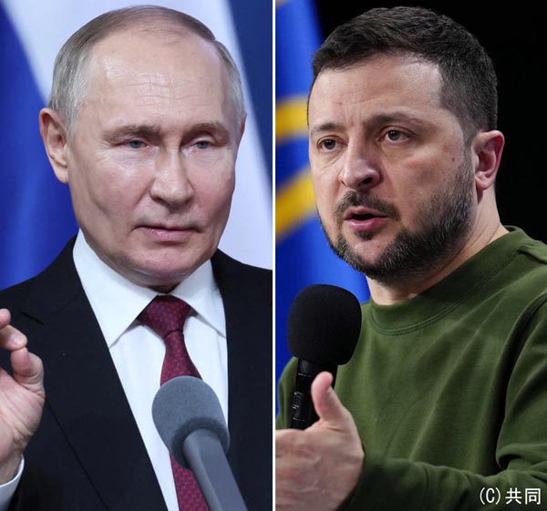 (左から)ロシアのプーチン大統領、ウクライナのゼレンスキー大統領(C)ロイター