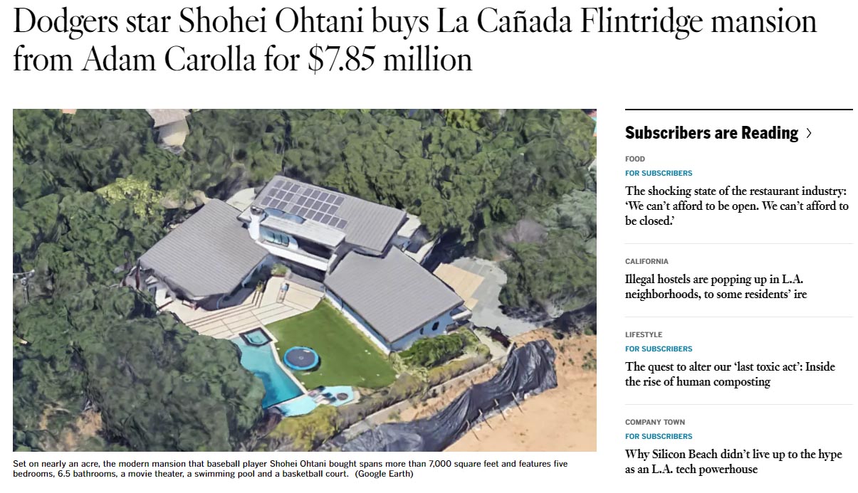 大谷が購入した大豪邸(C)L.A TimesのHPから