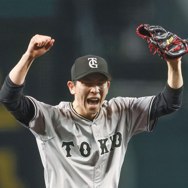ノーノー達成でガッツポーズの戸郷翔征(C)共同通信社