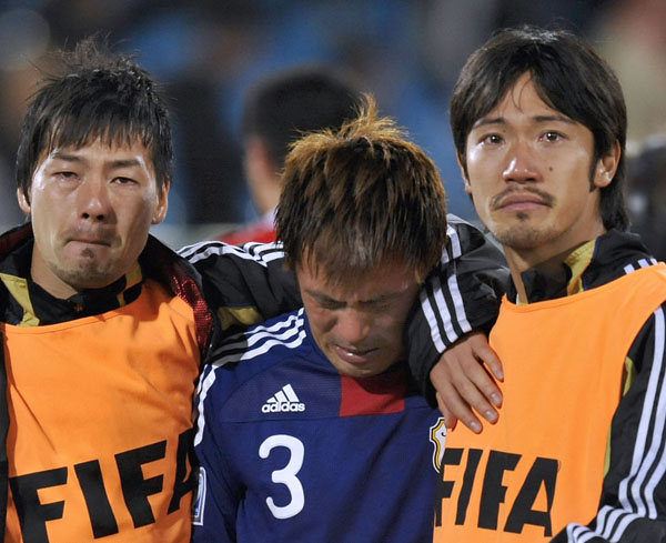 駒野を慰める松井(右)と阿部(C)JMPA