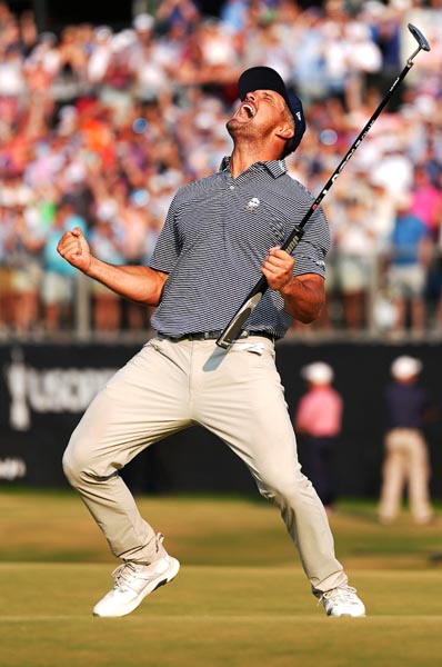 ウイニングパットを沈めて雄たけびを上げるデシャンボー(C)ロイター/USA TODAY Sports