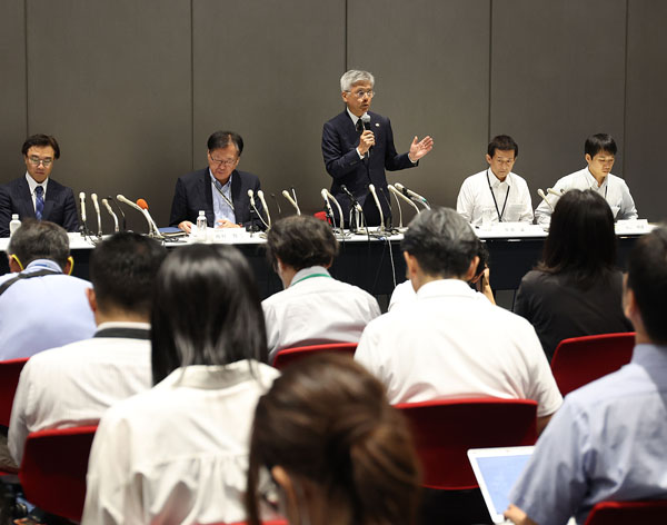 会見する体操協会(C)日刊ゲンダイ