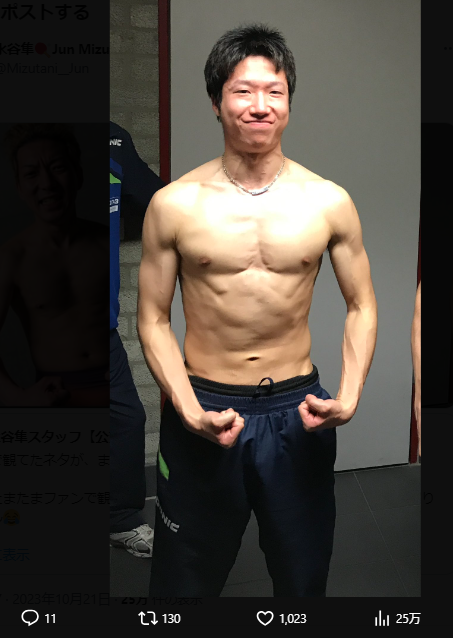 卓球・東京五輪金メダリスト水谷隼氏、鍛え抜かれた上半身を披露(C)水谷隼氏のXから