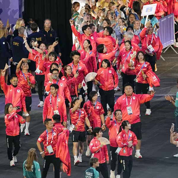2024年パリ五輪閉会式の日本選手団(C)共同通信社