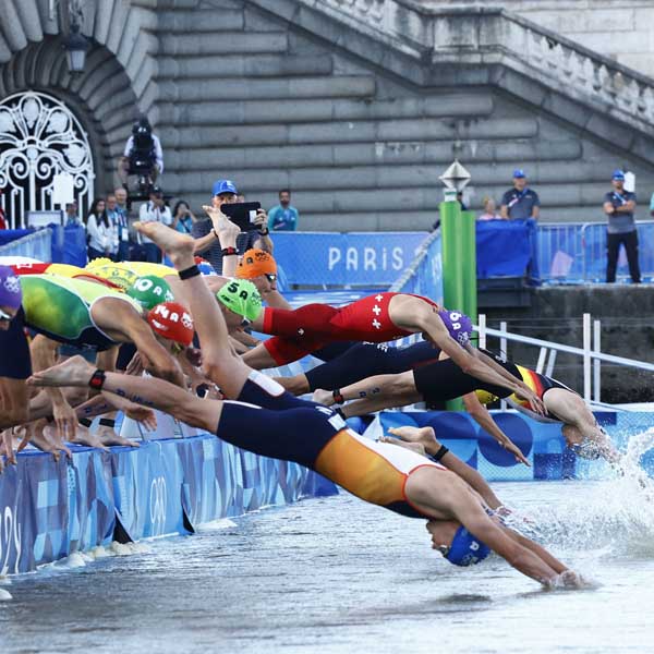 トライアスロン混合リレー、セーヌ川に飛び込む選手たち(C)ロイター