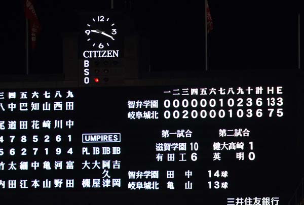ナイターとなった初日第3試合の智弁─岐阜北城(C)日刊ゲンダイ