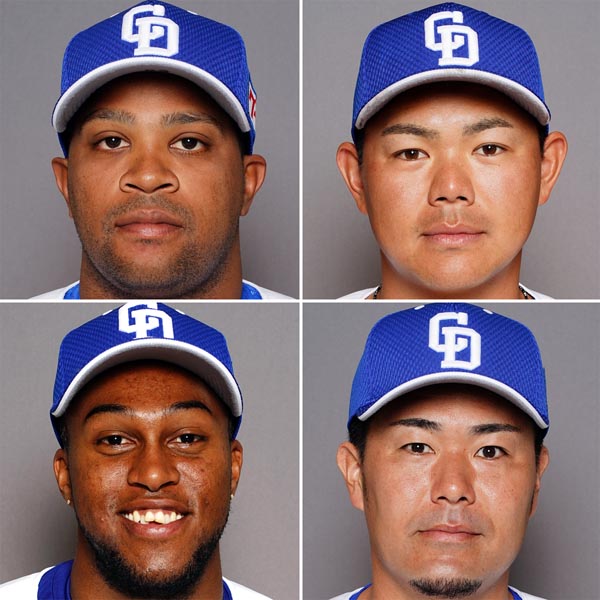 (左上から時計回りに)ビシエド、高橋周平、木下拓哉、マルティネス(提供)球団
