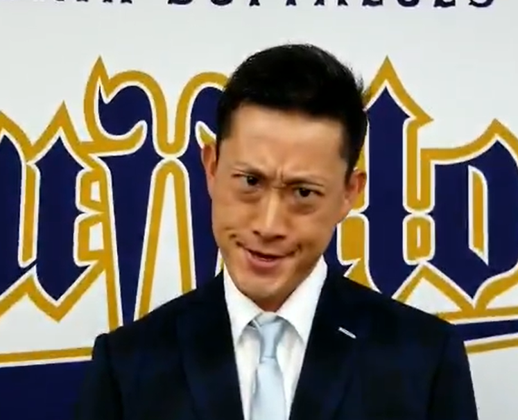 現役引退表明動画で変顔をする岸田新監督(C)日刊ゲンダイ