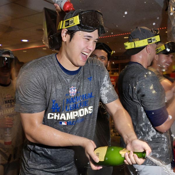 シャンパンファイトの大谷(C)ロイター/USA TODAY Sports