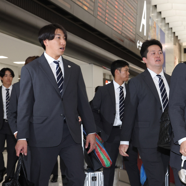19日に台湾から帰国した侍ジャパン(牧秀悟と大勢=左)/(C)日刊ゲンダイ